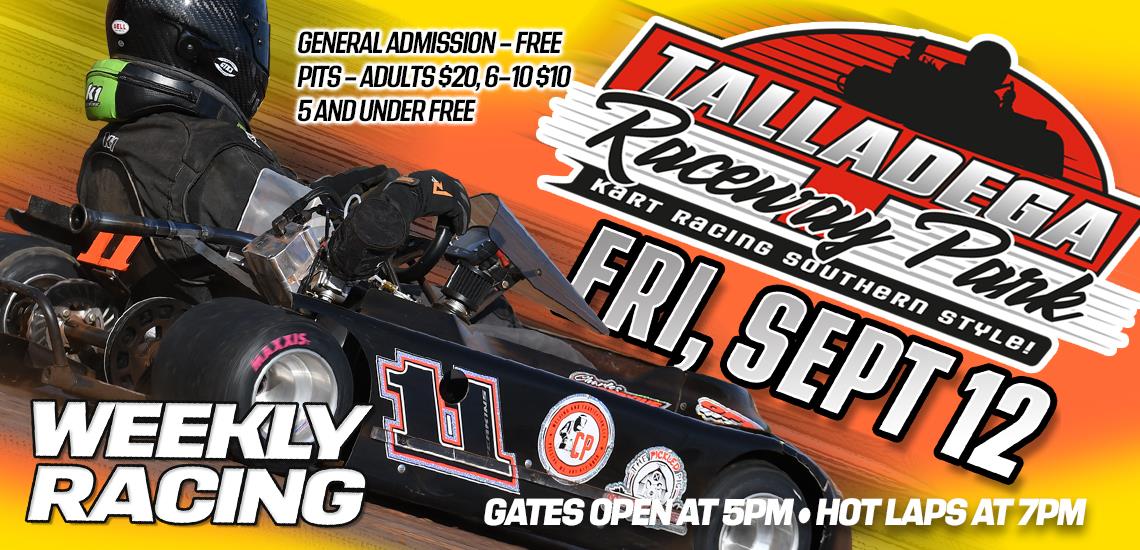 Talladega Raceway Park will be back in action on Friday, September 12th for a Weekly Kart Show! THIS IS OUR LAST POINTS RACE!??